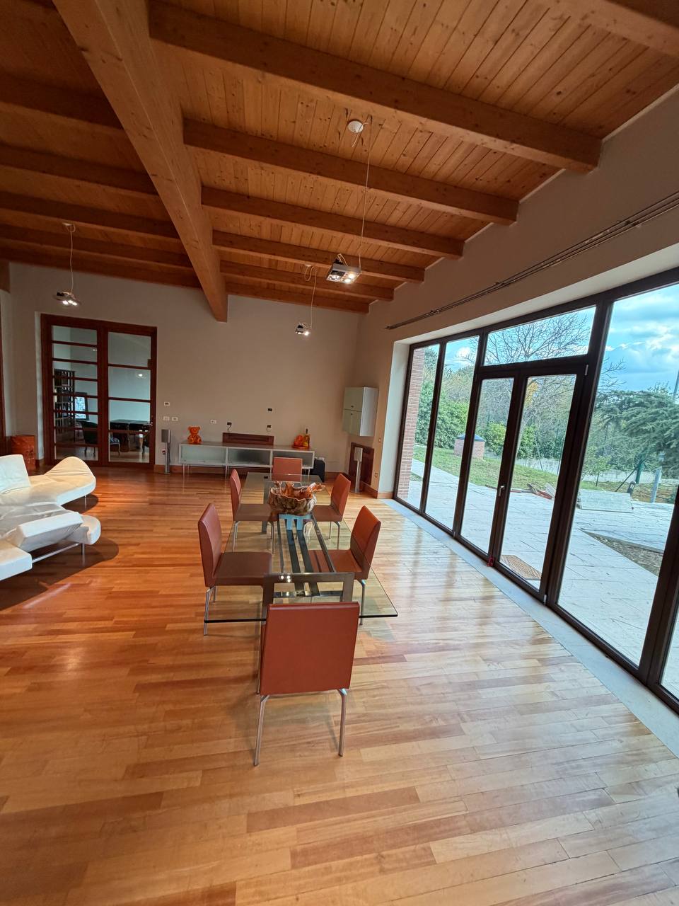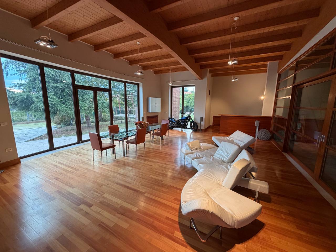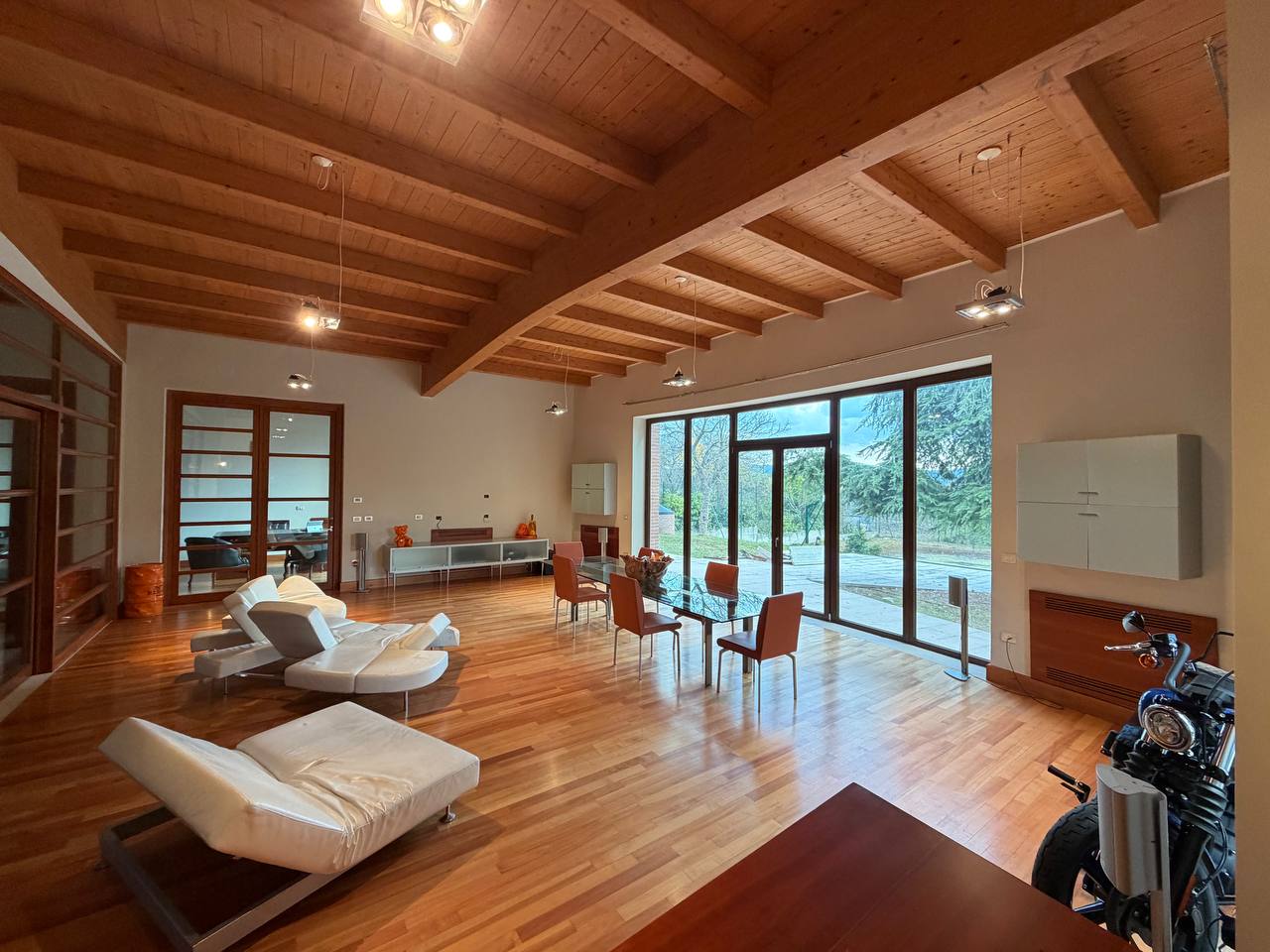 - Ampia metratura open space con pavimento in parquet e travi in legno a vista